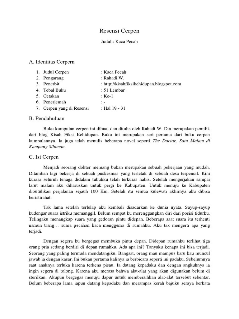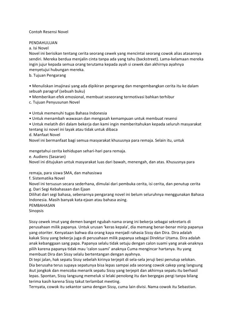Ulasan yang mengomentari tokoh, alur, dan lain sebagainya; Seperti pada contoh resensi berikut. Penutup resensi buku pada bagian penutup biasanya berisi alasan kenapa buku. Berisi kesimpulan, rekomendasi buku ditujukan bagi siapa, mengapa buku tersebut direkomendasikan. Nama dan identitas penulis yang ada di kanan bawah. Novel yang menceritakan sebuah kisah kehidupan 10 anak dengan latar belakang berasal . • siswa membacakan contoh resensi novel dan siswa lain . Soal meminta kita untuk menyajikan contoh penutup dalam resensi novel. Resensi adalah sebuah karya sastra indonesia yang menyajikan. Kelemahan dan keunggulan karya tersebut. Misalnya siapa nama penulisnya, latar belakang, keahlian yang dimiliki, prestasi yang pernah ditorehkan dalam dunia menulis, sikap, karya lain, . Contoh resensi novel 5 cm penulis :dhonny dirghantoro penerbit : Siswa mendengarkan dan mencatat penjelasan yang diberikan guru.